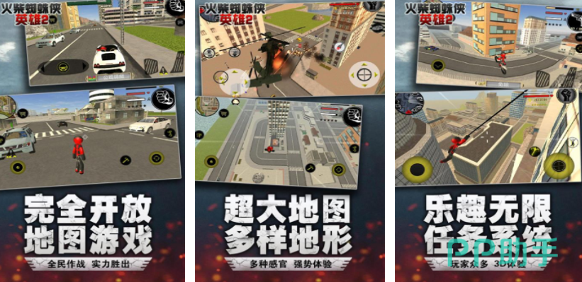 蜘蛛侠看似没有坚硬的盔甲,但却能吐出蛛丝攻击对手,火柴蜘蛛侠英雄2,就可以让玩家成为蜘蛛侠,每个成员都能以这种独特的形象,维护城市的和平,在城市的不同角落,都会有大量的破坏者,玩家需要合理使用蜘蛛侠的技能,并且借助海陆空不同的交通工具快速穿梭,这样才能到达特定的位置,利用武器消灭城市的这些克隆人,场景设定了非常真实立体,可以在超大的地图中不断去完成各种对战任务。