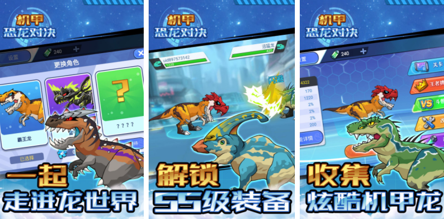 机甲恐龙对决会让时间线进入到未来,在这里大量的恐龙会复活,可以继续操控这些恐龙,开启挑战,除了直接用他们最常规的形态战斗之外,还可以在挑战的过程中组合各种机甲零件,这样这些恐龙就会有更强的战斗力,每一个机甲零件都能随意调换,玩家可以在这个卡通科幻世界,组装强力的机甲恐龙,接着还能带领他们进行战斗,展现自己的拼装能力。