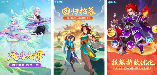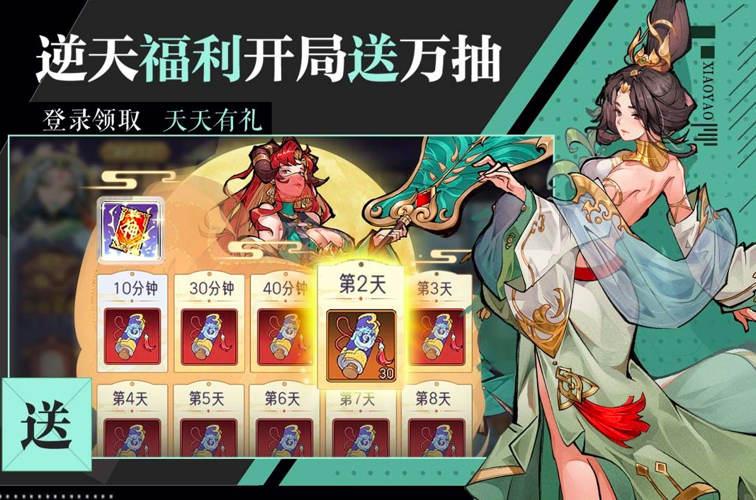 国风爱好者必体验的卡牌游戏——逍遥九重天,经典的古神话角色一卡牌形式和诸位见面,结合更多轻松休闲玩法,从线上摸鱼到种田,结合更多轻松休闲玩法,从线上摸鱼到种田,让你在角色养成之路上如此丝滑又不爆肝,实现了一件养成无损换将模式,再也不用担心资源浪费,新手上线还送逆天福利,开局即可得万抽。