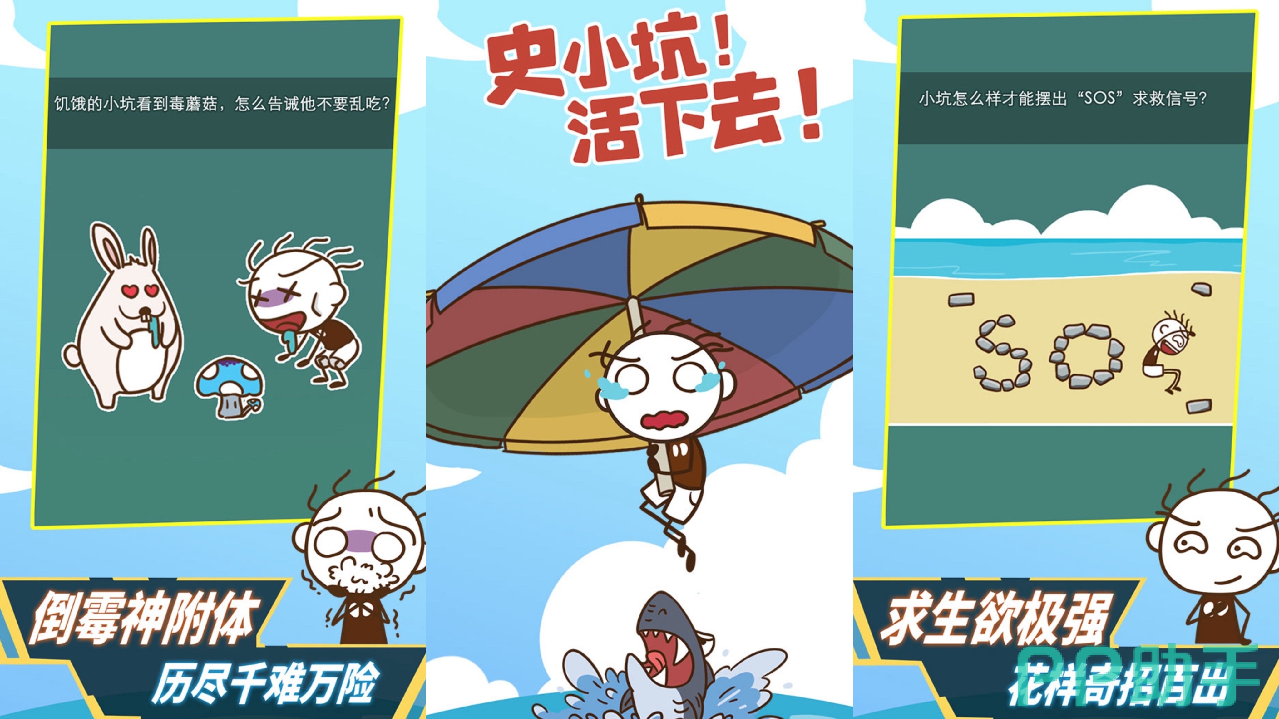 这是一款非常魔性有趣的益智闯关手游。游戏里的主人公史小坑流落荒岛,而我们的目标就是拯救史小坑,让他在荒岛上生存下去。游戏的闯关玩法主要是以问答和操作的形式来呈现的,每一关都存在一个考验,比如断水,野人,断粮等各种情况,我们只有解决这些问题才能解锁下一关。游戏搞笑又抽象,每个问题都会在你的意料之外,欢迎大家前来挑战哦!