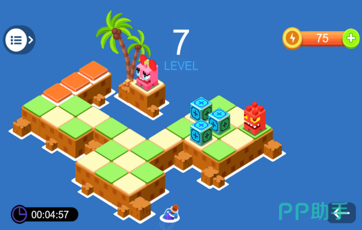 《推箱子》是一款童年经典的益智休闲闯关类手游。游戏的玩法和童年没有区别,就是把箱子推到指定的位置。但是整体的画风和设计都做了很大的改变,不仅采用的是像素立体角色,同时配色也非常的明亮活泼。而且还有丰富的地图背景,让大家每次的闯关都能拥有更多不一样的体验,难度也会随着关卡的推进越来越高,欢迎大家下载挑战!