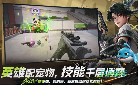 在这款非常好玩的多人射击手游当中,融入了超多的英雄以及现实生活中的各种高楼大厦,有丰富的人物角色以及丰富的武器装备,通过不断跑酷猎杀以及收服的各种宠物角色,通过拼枪之间的博弈对决,来成为战场当中的王者。也是在游戏当中融入了吃鸡玩法的,为了能够让大家在庞大的战场当中,顺利完成吃鸡的任务,当然也要有灵活的身法以及战术。
