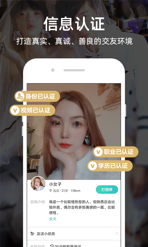 想要认真严肃婚恋就选它!一伴婚恋主打严肃真诚相亲,每个用户的信息都是采取三重认证,保障信息真实,资料页还能看学历、房产和工作。聊天采用“小纸条”传信模式,像学生时代传纸条那样有着怦然心动的感觉。系统按婚恋需求进行智能推荐,还能互查认证资料,不做无效聊天,奔现更放心。