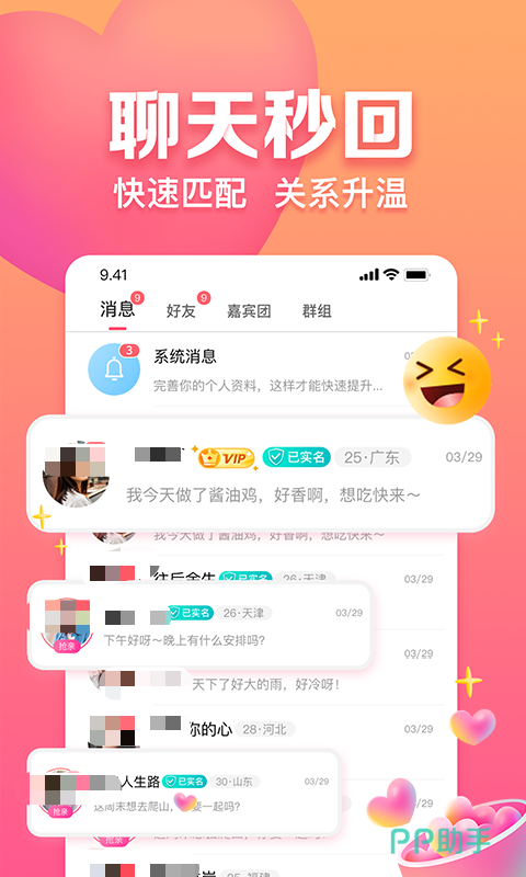 作为老牌的约会软件,探探主打一个高效率,可以通过左滑右滑的方式找到自己喜欢的人,而且还可以根据喜好方面,推荐几个高度适配的人,精准度会更高,而且为了出现欺诈行为,软件也会进行相应的认证,这样大家找到优质伴侣的概率会更高。