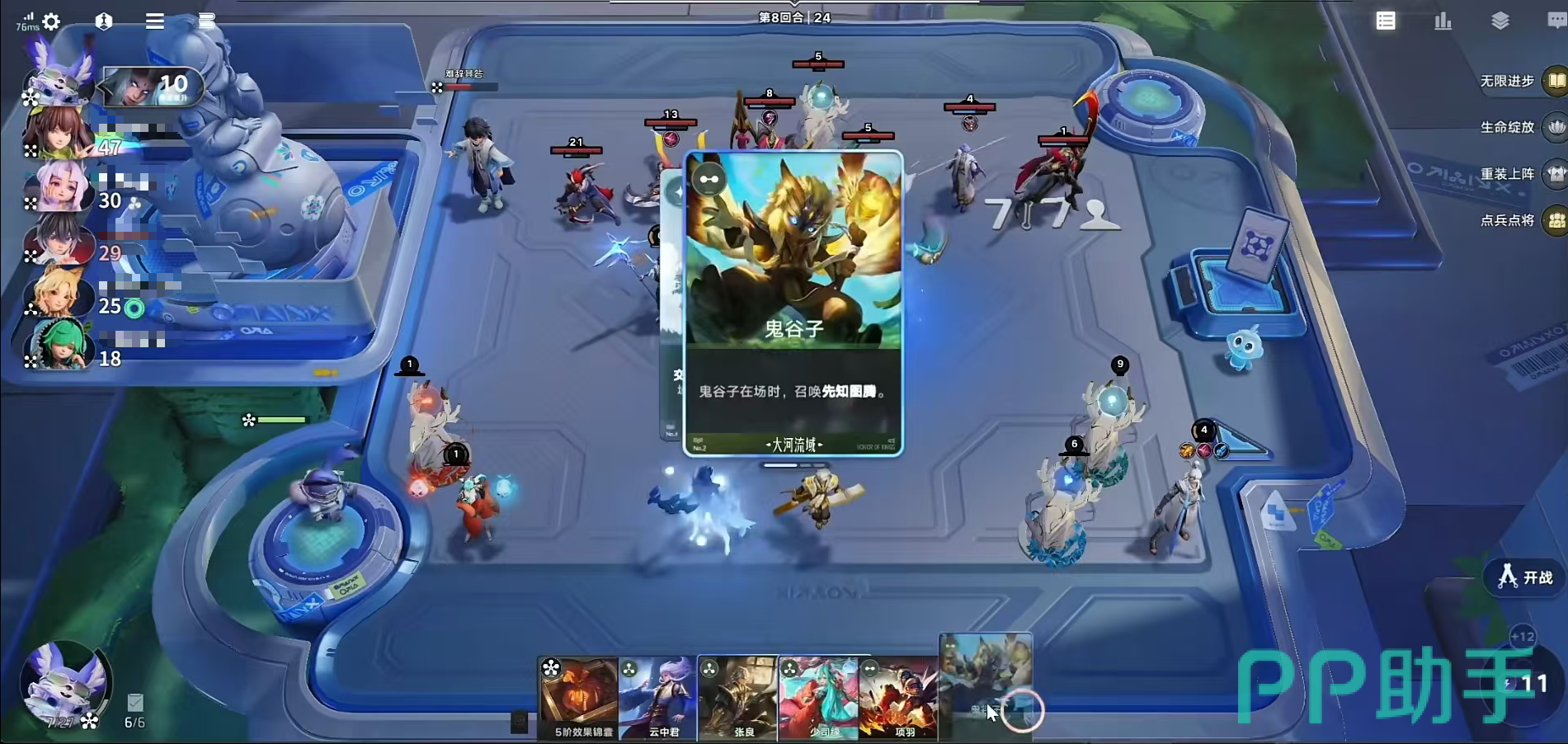 运营节奏方面,建议前期聚焦三核心:虞姬、鬼谷子、闹闹。优先凑出三人羁绊,同时保留能量稳步升至5级,再视来牌情况决定是否提速上6级。切忌在3级前强行刷牌或执着搜寻特定英雄——闹闹的存在使中后期质量跃升极为平滑。3级时可精准卡能量释放“排队泡泡”,确保每轮刷牌均有正向收益;1级阶段请勿使用该技能,避免能量浪费。