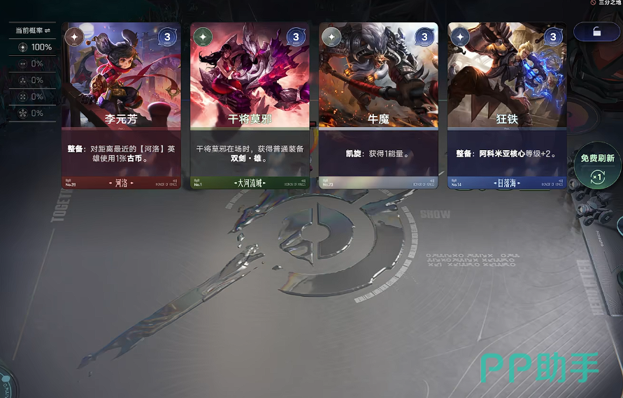 能量即游戏内的通用货币,用于在商店中购买英雄卡牌。每位玩家在每个回合开始时自动获得固定额度的能量:前7回合为6至8点;第8至12回合则提升至12至15点。不同等级的英雄卡对应不同能量消耗,高数值、强技能的顶级卡牌所需能量最高,往往成为中后期决胜的关键资源。