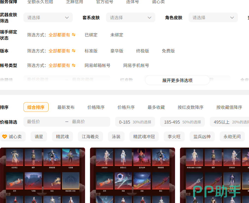 作为专注游戏虚拟资产交易的成熟平台,交易猫长期支持《永劫无间》账号类目交易。平台覆盖从初始战力号到满配顶流账号的全梯度资源,包括但不限于:全英雄解锁+高阶武器皮肤组合号、限定赛季段位(如天人合一、不朽)账号、含稀有外观道具(如“赤霄·焚天”“玄冥·霜魄”等)的收藏级账号。此外同步提供永劫无间专属大礼包、段位代练、装备强化辅助等延伸服务,满足不同成长阶段玩家的差异化需求。