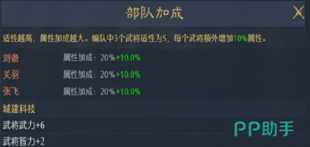 最大化发挥缘分系统效能,需转变传统配将思维:避免孤立评估单将数值,转而聚焦武将间的历史适配度。优先选择史实关联紧密的组合——如庞统与诸葛亮(卧龙凤雏)、关羽与张飞(桃园结义),其缘分效果强度与稳定性均优于随机搭配。同时需关注武将兵种适性:若三名上阵武将适性全部达到S级,可额外获得10%全属性加成,进一步放大缘分收益。