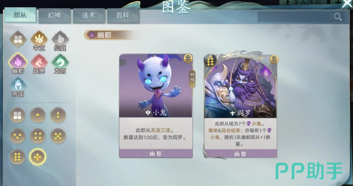 十尾狐妖是妖界体系的核心代表,主打高频率妖气资源转化与前期铺场压制。其机制围绕“妖气”这一专属资源展开,可快速召唤低费妖系单位并触发连携效果。推荐搭配刺客类或法术类卡牌,构建“妖气爆发流”,通过天书升级优先积累资源,实现中期爆发式输出。该幻神泛用性强,适配多种起手阵容,新手入门首选之一。