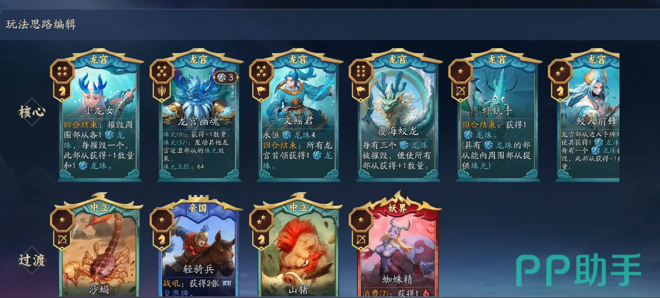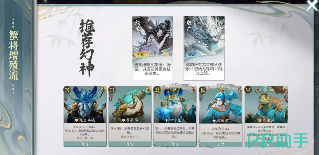 敖广为龙宫势力核心,核心优势在于提升龙珠上限并强化珠光效果,显著加快主力单位成型速度。实战中可搭配四海龙王组合,触发双回合结束机制,大幅提升攻击频次与单位数量压制力,适合追求稳定推进与持续压制的玩家。