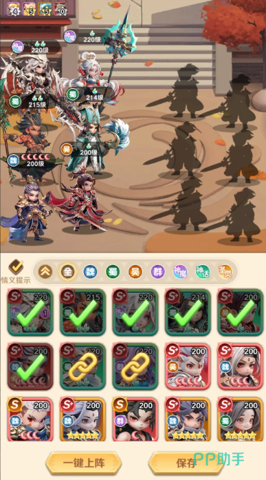 她的普通攻击可对单名友方单位施加治疗,而主动技能则覆盖全体前排及中排共三位队友,不仅恢复生命值,更附加一层“保护”效果——使目标在下一次受到异常状态伤害时直接免疫。被动技能专精于魏国体系:为所有魏国武将提供伤害加成与减伤效果;升至一星后,有概率触发“神护”状态,覆盖全队,并同步提升魏国角色暴击率。
