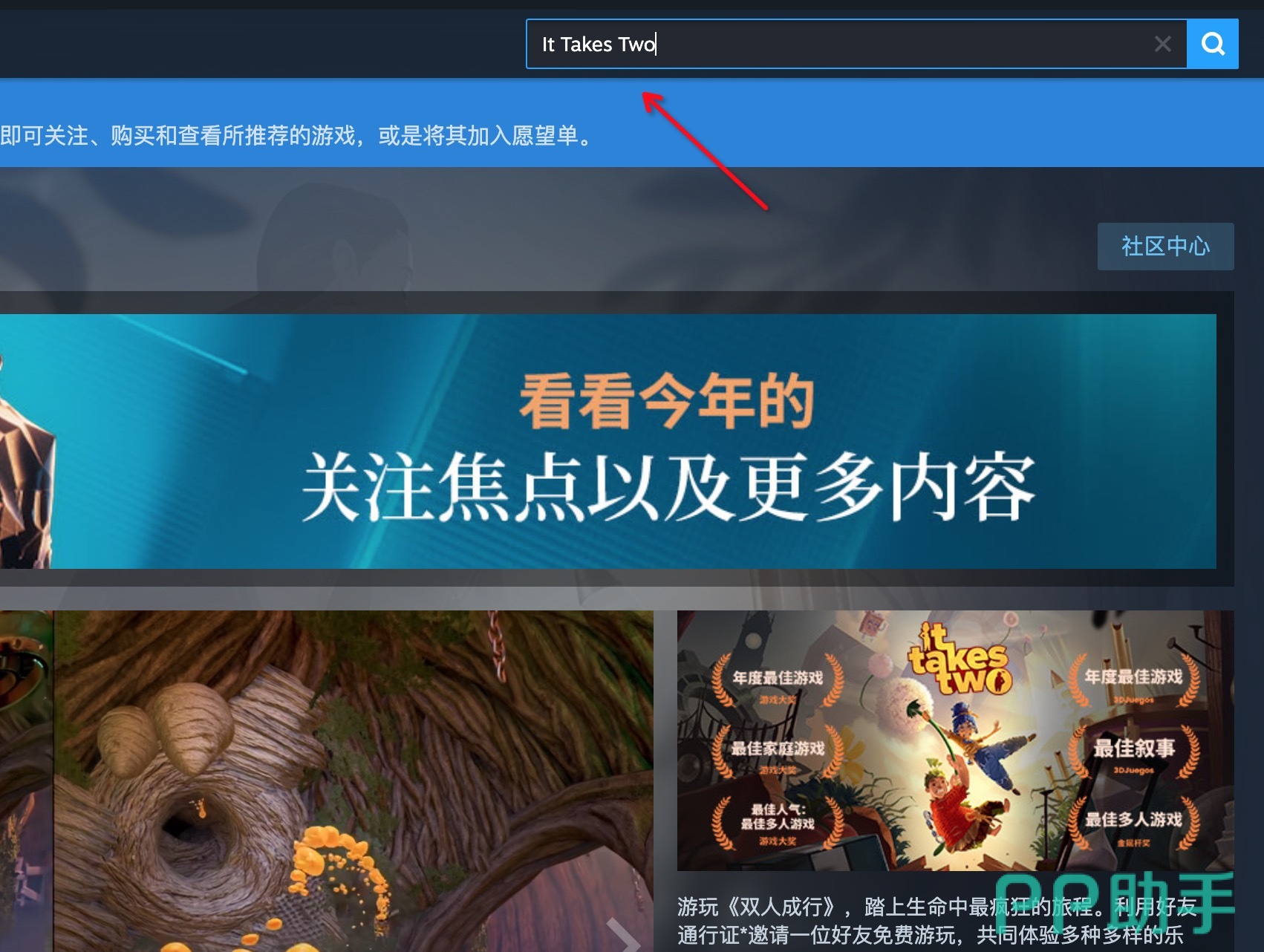 本作在Steam平台的官方名称为“It Takes Two”,中文名统一译作《双人成行》。用户无论使用英文原名还是中文译名进行搜索,均可精准定位到该游戏商店页面,完成购买与下载。