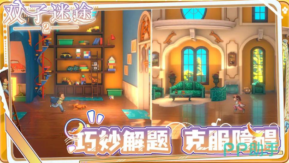 视觉呈现方面,《双子迷途2》采用统一的手绘质感美术风格,整体色调明快柔和,线条干净利落,场景构图强调留白与节奏感。动态光影处理以静态烘焙为主,角色动画采用逐帧手绘+骨骼混合驱动,规避了大量实时物理模拟与粒子特效计算,显著降低了GPU负载压力,使画面表现力与性能开销达成良好平衡。