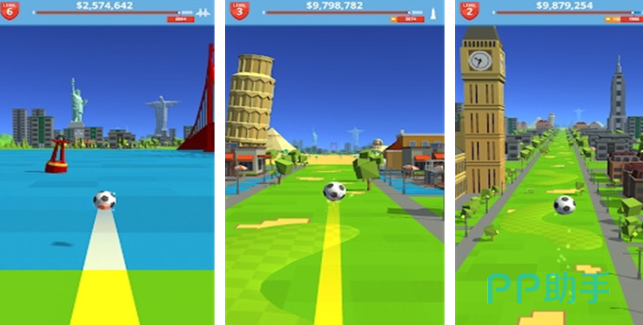 核心玩法为精准物理弹射——玩家通过长按屏幕蓄力,松手后控制足球轨迹穿越障碍、命中目标区域。场景设定融合全球知名地标,每关地形结构各异。操作仅需一根手指,但路径规划与力度把控构成主要难度,适合碎片时间挑战反应与预判能力。
