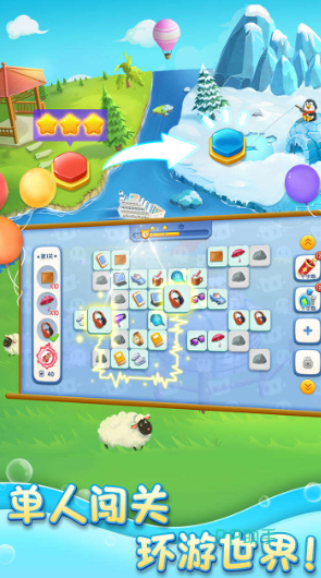 六边连连消跟平时的方形格子有所差别,他通过六边形格子摆放图案,整个画面看起来层次感十足,图案被做成了梦幻元素,消除还会有对应光效,视觉效果让人感觉很舒服,六边形布局让那个相同图案的连接路径更具多样性,遇到比较困难的关卡的话,有时候换个角度就可以发现新的消除组合,玩起来更有活力。
