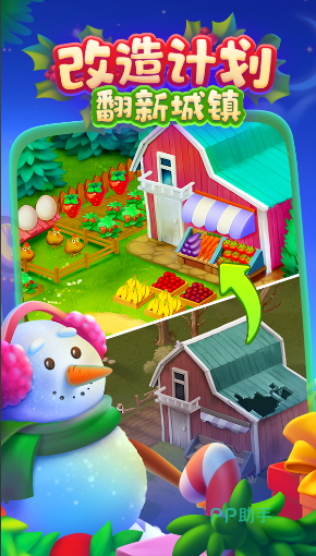 游戏里面有完善的经营系统,覆盖农作物种植工厂加工和货物销售。建筑内容包括住宅商铺和各国标志性建筑,搭配四季变化让场景更有代入感。圣诞主题装饰上线了巨型圣诞树和礼品店,姜饼人收集和摘星活动最近同步开启,直升机轮船也推出了节日涂装。社交功能支持好友互助订单和小镇分享,智能花园甜品马拉松等探险活动丰富了玩法层次。