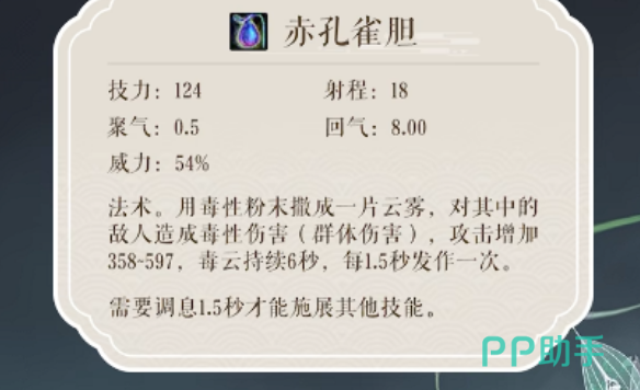 核心输出技能“赤孔雀胆”可释放持续毒雾区域,敌人处于范围内将承受周期性毒伤。该技能无锁定要求,仅需维持角色与目标的相对位置即可稳定生效,是整套循环的基础。但单一技能难以应对高血量Boss,必须配合其他毒系技能构建完整输出链。