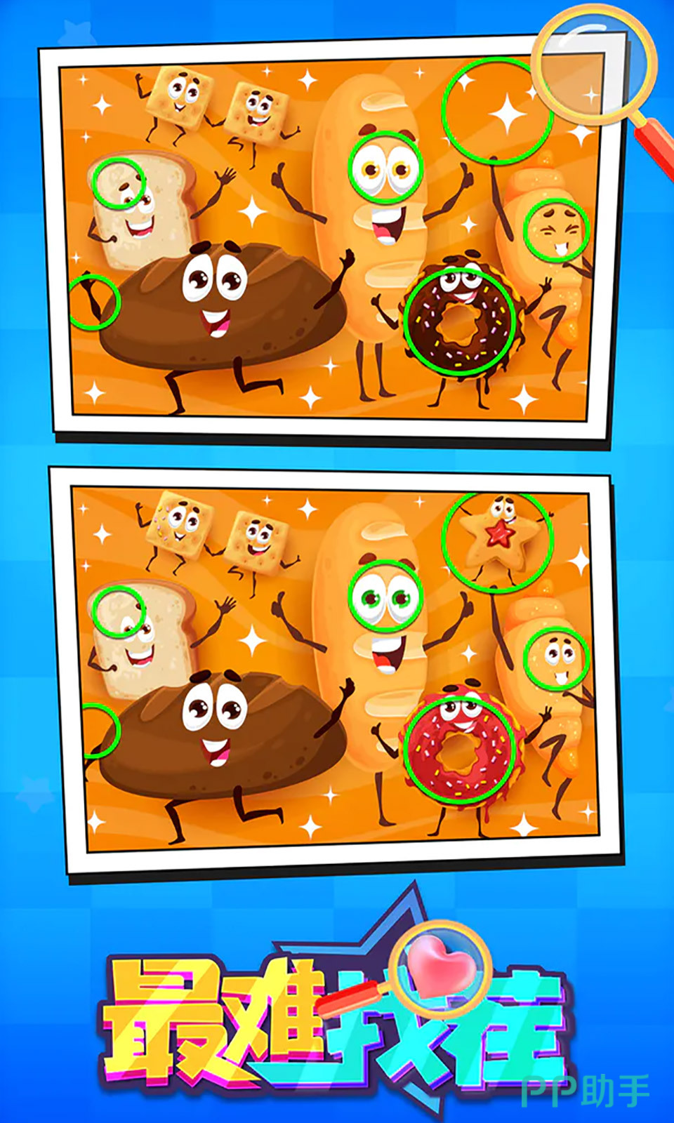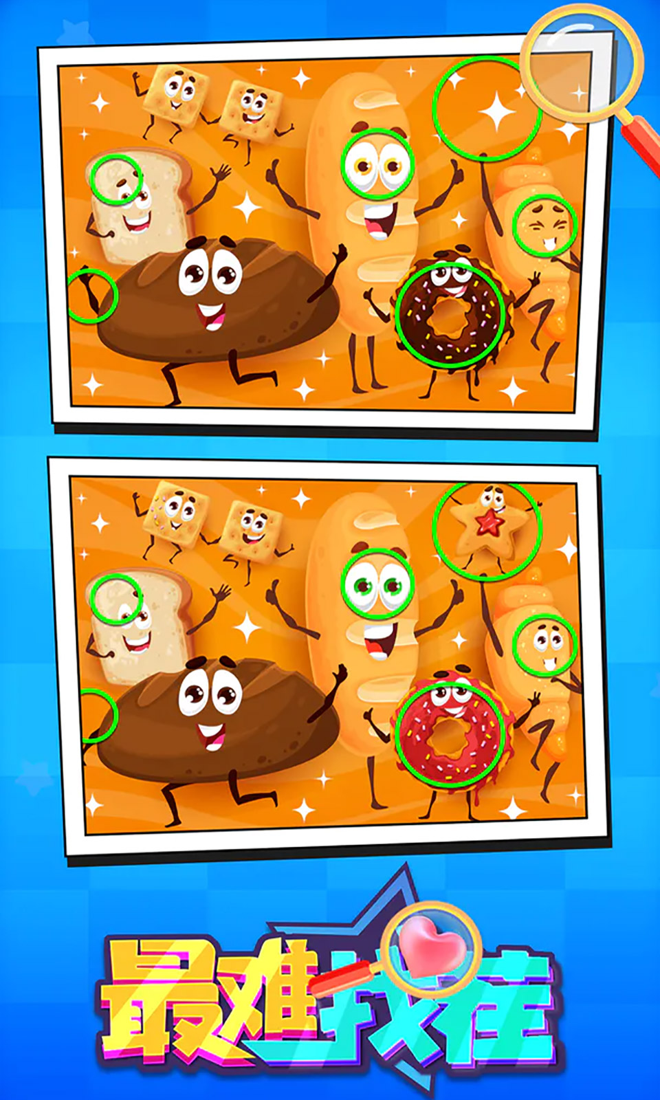 以卡通的风格呈现了找茬的各个场景,玩家可以使用放大镜或者是其他的道具,寻找众多图案中唯一不同的地方非常非常考验玩家的观察能力,两张图片中进行仔细的对比后就能够发现极其细微的地方。不同类型的主题图片在视觉上呈现出一种焕然一新的效果,面对全新的挑战内容,也将会是玩家自我不断突破的过程。