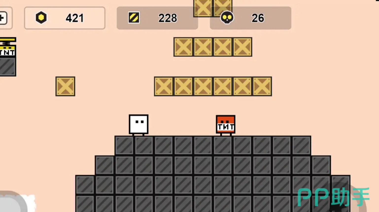 在每一个关卡中怪物的追击速度都是不同的玩家双方需要各操控一名方块来进行竞速,在竞速的过程中可以向对方投去一些障碍物来限制对方的前进,所以玩家要对自己的角色进行灵活的操作,使他能够去躲避各种各样的障碍物,并且加快移动速度,在怪物追到之前顺利到达游戏的终点,让整个游戏的欢乐度不断的增加。