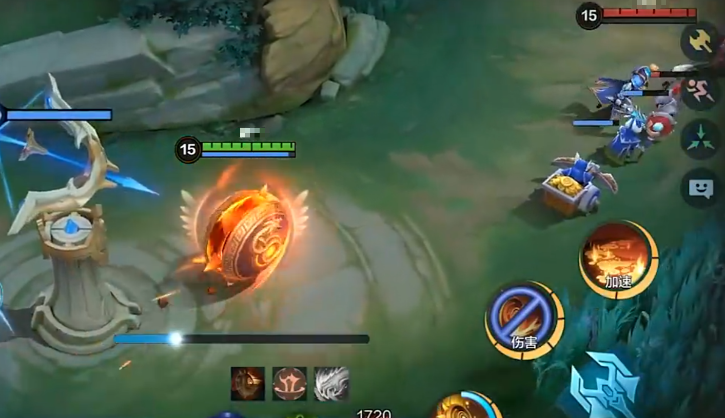 一技能以高机动性与强控场见长:首次释放时霸下缩入护盾并高速翻滚,期间可再次点击该技能实现跃起突进;若跃起轨迹正下方存在敌方英雄,则立即发动重击,造成范围伤害、击退及1秒眩晕。该技能兼具穿墙能力与地形跨越特性,是开团、反打与追击的重要支点。