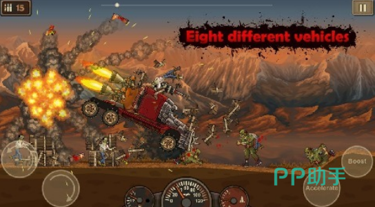 2d复古的画风所展现,在到处都是僵尸的环境中,大家最主要的任务就是驾驶着战车在沙漠当中一路狂奔,在狂奔的过程中也会遇到汹涌来潮的僵尸,那么此时手持枪械就需将这些僵尸彻底打败,只要打败的僵尸越多,获得的分数也会越高。其次还提供丰富多样化的武器类型,还融入恶搞的黑色幽默风格。
