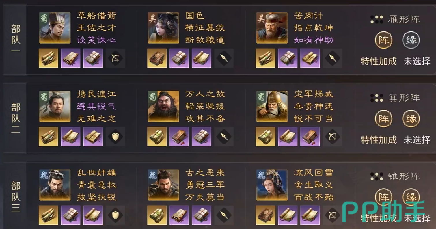 战队组建完毕并选定开赛时间后,系统将启动智能匹配。成功匹配后,队伍先进入预配队阶段。每场战斗将随机强化三位武将,玩家可据此自主构建差异化阵容;同时,系统会生成若干战场特性供选择,最终确认其中两项生效——涵盖兵种属性加成、全军基础能力提升及阵营专属增益等维度。对战地图采用严格对称布局,双方出生区域位于地图两端,开局即各自掌控3座指定城池与1座精锐营。
