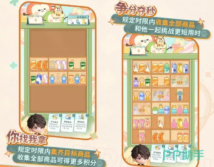 活动流程分为多个趣味环节:首先与夏以昼共同整理超市货架;随后进入挑战模式,通过识别并归集商品完成收集任务;接着可自定义Q版角色形象,并与夏以昼组成搭档;最后进入主线剧情体验,共同参与宠物救助主题的公益赛事剧情。