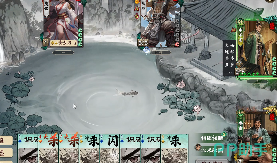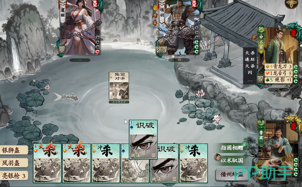 二者配合的关键在于“信息—决策—执行”闭环:申不害通过【藏于无事】获取敌方完整手牌情报,即时共享至鲁肃;鲁肃据此判断威胁等级,若目标持有高爆发或关键控场牌,即可动用【缔盟】将其手牌与场上手牌最少者互换,实现战力再平衡。当申不害陷入手牌短缺时,鲁肃亦可通过【好施】主动输送资源,保障其持续施压能力。