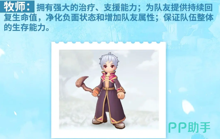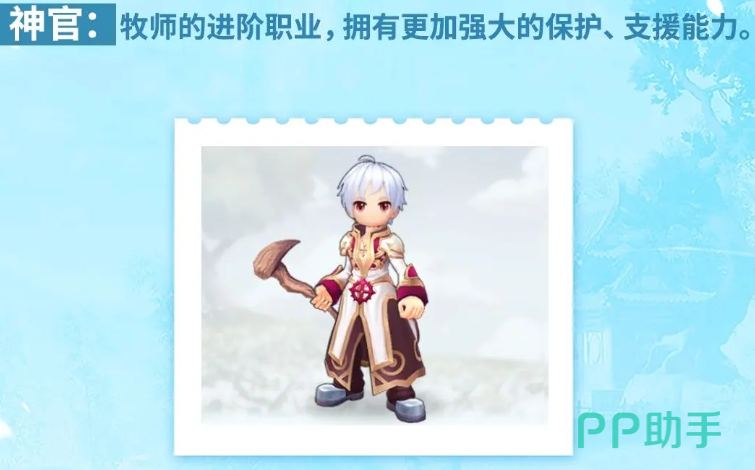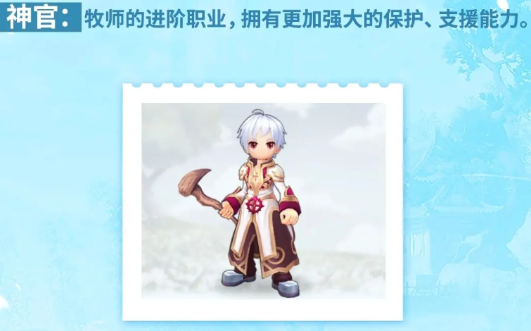 服事拥有的支援能力也可以为队友带来足够的恢复,而且净化类型的效果也可以让我方不受对面负面状态的一些影响,增加了队友属性的话,也是为我方增加足够的战力,那么服事后期可以走的转职有两个方面,第一个是牧师,牧师的路线当中大家进行转职的话,会拥有更强大的一些支援能力,包括其中的治疗可以为队友提供的持续生命数值会更高一些,然后在净化效果上面增加的数值也会更高,所以整体提升的就是生存方面的能力,而第二个转职的话,大家就可以走神官,此时进行转职的话就是可以看作是牧师的进阶职业拥有的能力,就是更多的在体现资源以及保护的效果上面,所以通过这样的转职,大家可以加深服事他基础的一些能力。