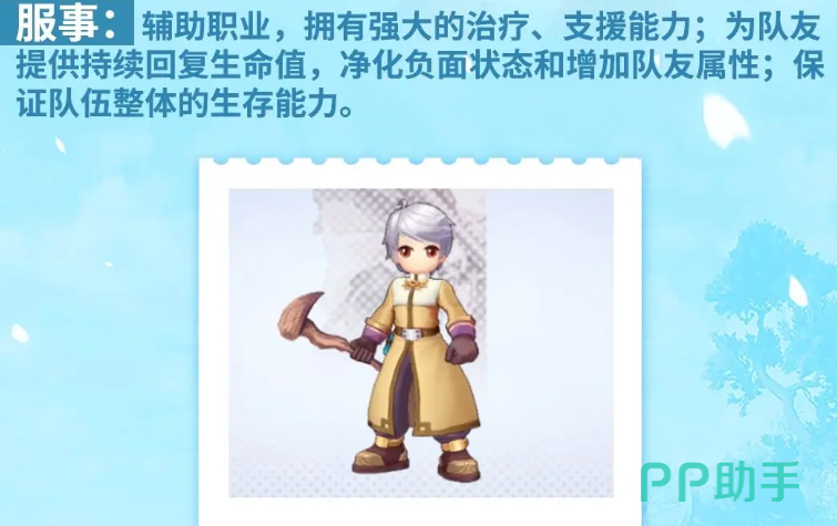 目前在游戏当中大家如果玩服事这个职业的话,那么在定位上面就是走的辅助类型路线,跟其他一些有输出类型职业的效果不太一样,服事的技能体系当中可以带来的治疗效果会更强势一些,而且有足够的增益,也可以用来保护队友,如果大家想要挑战高难度副本或者是一些比较强势的boss,服事能够带来的队伍效果会更完整一些,而且后期在团队的需求上面,服事在场的话,带来的容错率会反而更高一些,所以目前大家玩辅助流的话,服事走的路线是最为推荐的。