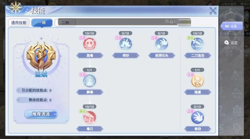 而且在目前玩法上面,盗贼在提升起来之后参与排行榜也会有一定的优势,技能效果方面,大家可以选择一些连爆概率比较多的技能,比如说双刀斩击和屠戮,这两个技能都是比较适合盗贼来使用的,那么在穿刺技能效果上面,大家可以选择的是精准刺杀以及无影手,想要提升盗贼的生存能力的话,大家就可以选择暗影行踪以及无敌斗志,毕竟这两个技能相对于他在这种防御面板不高的职业来说还是有一定加成的,而且在转职之后大家要注意其中有一个隐匿术,后期大家如果要参与pvp的话,这个招式是非常有用的,可以让大家在对战当中得到足够的灵活性。