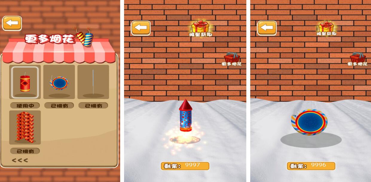 《烟花嘉年华》将炸烟花玩法以及闯关模式结合在了一起,玩家可以在闯关过程中释放烟花。游戏提供了上百种不同形态的烟花,玩家可以通过收集并释放烟花的方式来完成任务。动态的难度捕捉系统会根据玩家的游戏时长以及操作,来及时调整挑战难度。在特定的节日,比如新年还会推出相应的主题关卡以及烟花哦。