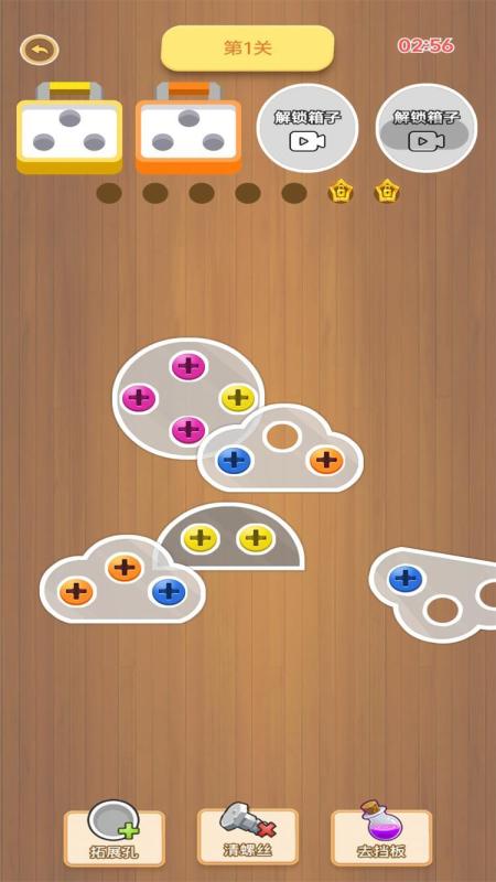 依靠着我们的玩家智慧来完成其中的挑战,游戏里面只要是移动了所有的螺丝钉以后,即可将一个个木板释放下来,顺利的完成通关的要求就可以了,《打螺丝拧不住拔钉子》这款手游之中的手工制作的魅力还是很不错的,而且你们可以去查看排行榜,了解自己的名次所在哦。