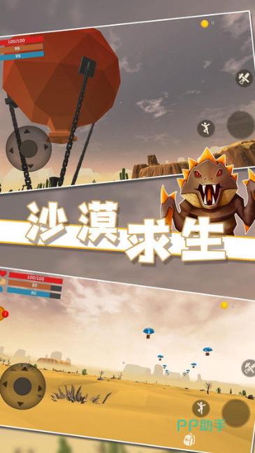 《沙漠风暴末日生存》这款游戏在沙漠的场景当中真是能体会一下更新颖的体验,等待你的是一场场的生存过程,沙漠风景的写实风格真的很吸引人,还有不错的光影效果,好像真正的走在沙漠上的感觉,当中你需要做的就是找到水源,建立自己的庇护所,然后消灭更多的沙漠怪物,在通过自己的努力创造出更有生气的沙漠绿洲。