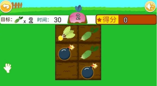 锻炼记忆力的作品,加入可爱又呆萌的小兔子,融入多种不同品种萝卜,在田地中,除了有萝卜蔬菜之外,还有炸弹,要根据你的记忆力来记住这些物品的具体排列顺序,之后再一一翻开,翻开炸弹就会导致游戏失败,因此要凭借着自己极强的记忆力来寻找到萝卜,非常考验儿童的记忆能力以及策略思维。
