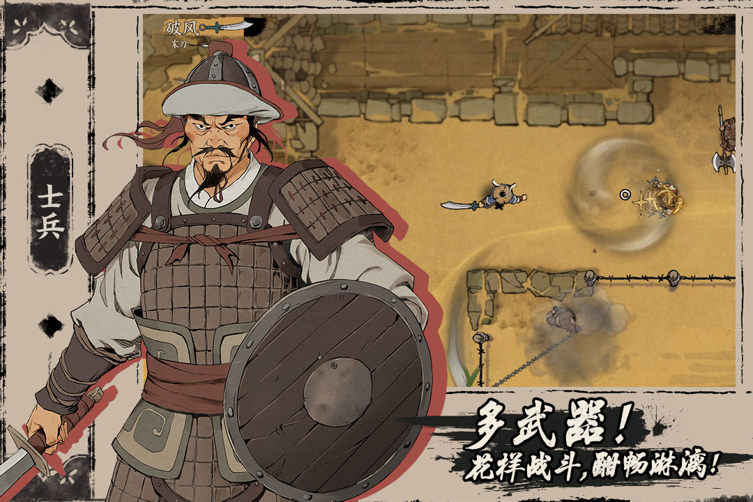 一个硬核动作类单机武侠手游,游戏强调一刀定胜负的战斗方式,敌我双方都没有血条,只能承受一刀伤害。虽然操作上只有移动、挥刀、冲刺三个按键,但是搭配十几种武器的特殊技能,玩家可以做出弹反和影遁等高级战斗技巧,游戏中的敌人有刀盾兵、弓兵等不同类型,而且关切地图中还会有陷阱等互动元素,需要玩家靠走位和战术应对。
