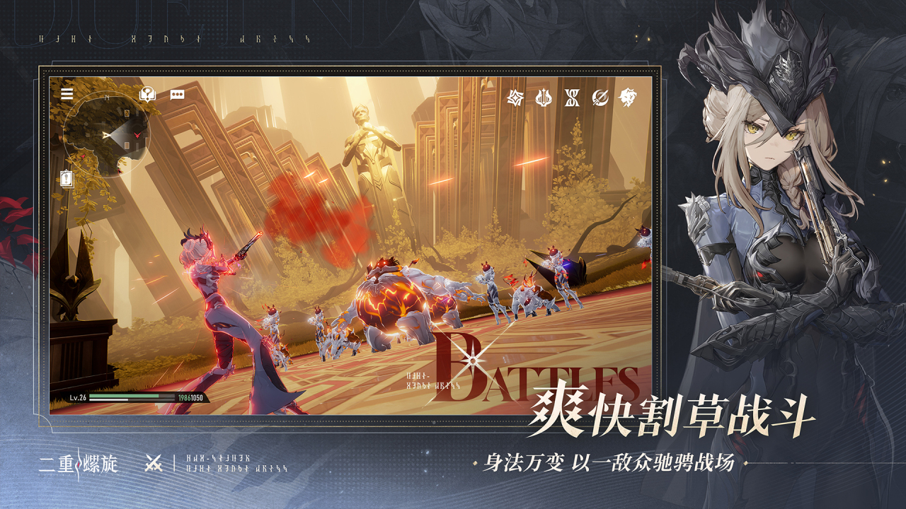 一个二次元幻想风格动作角色扮演游戏,游戏采用双主角双线叙事,男主的剧情侧重生存挑战,女主的剧情则以权力阴谋为主,最终两条故事线汇合揭示整个游戏剧情。游戏中的战斗采用双武器自由搭配与立体战斗,玩家可以自由切换近战远程武器,还有螺旋飞跃等高速机动技能,boss战还加入了破盾机制。