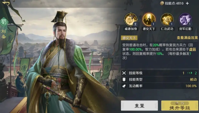 技能系统(亦称战法系统)赋予武将差异化战斗定位。每位武将初始拥有2个技能:主将技仅在1号位生效,需积攒怒气释放;固有技随进阶同步强化。其余2个技能栏位随角色成长逐步解锁,支持根据战术需求灵活装配。前中期技能点较为紧张,推荐采取均衡升级策略,即对已装备的全部技能同步提升等级,避免资源过度倾斜导致技能链断裂。