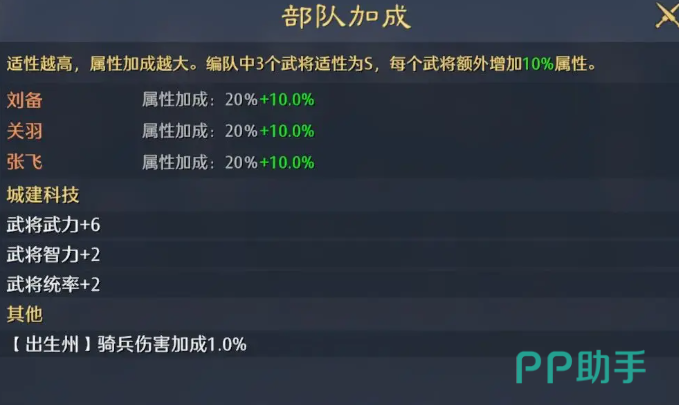 兵种协同是阵容构筑不可忽视的基础逻辑。当三名武将同属一个兵种,且该兵种适配度均为S级时,即可激活“3S兵种共鸣”,额外提供10%全属性加成。该效果在游戏初期尤为关键,建议围绕高适配兵种筛选武将,优先构建契合度高的稳定组合,而非单纯堆叠个体强度。