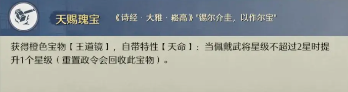 武将进阶(俗称“红度”)是拉开同阶武将战力差距的核心手段。每位武将最多可完成5次进阶,其中第1、3、5次进阶将强化技能效果,第2、4次则直接提升基础属性。进阶所需信物数量依次为1、1、2、2、3,总计9个,属稀缺型长线资源,需结合主力阵容提前规划。此外,“天赐瑰宝”政策可在低星阶段为指定武将额外提升1星,为核心武将快速成型提供重要助力。