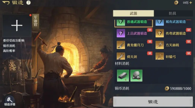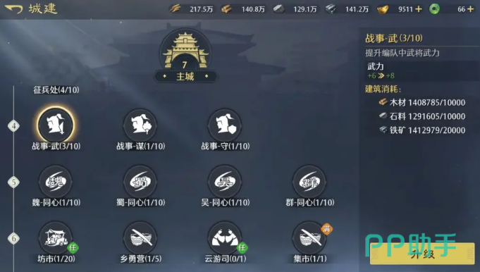 内城科技为全局性成长系统,随主城等级逐步开放。军事类科技可直接提升武将武力、谋略等核心属性,部分科技还针对特定阵营或兵种提供专项加成。其中军事府科技还能增加单将带兵上限,实质等同于提升武将在战场上的实际作战容量,在资源允许前提下,建议优先投入升级以获取最大战力回报。