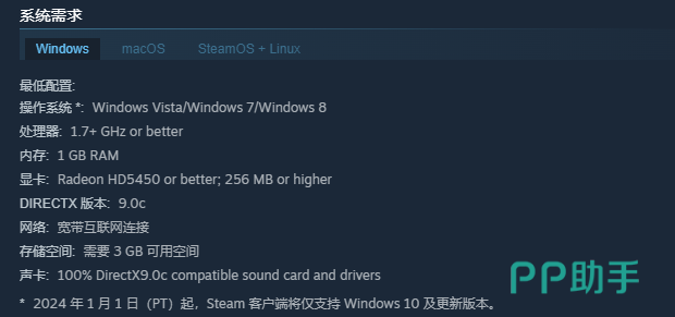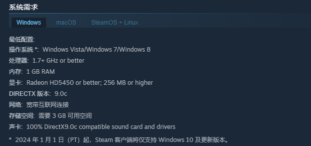 Windows平台运行《饥荒联机版》的最低系统要求如下:操作系统需为Windows Vista / 7 / 8;处理器频率不低于1.7GHz;内存至少1GB(建议2GB以上以保障多任务稳定性);显卡需支持DirectX 9.0c,如Radeon HD 5450或同级NVIDIA GT 430;显存容量不少于256MB;安装前请预留不少于3GB的可用硬盘空间。