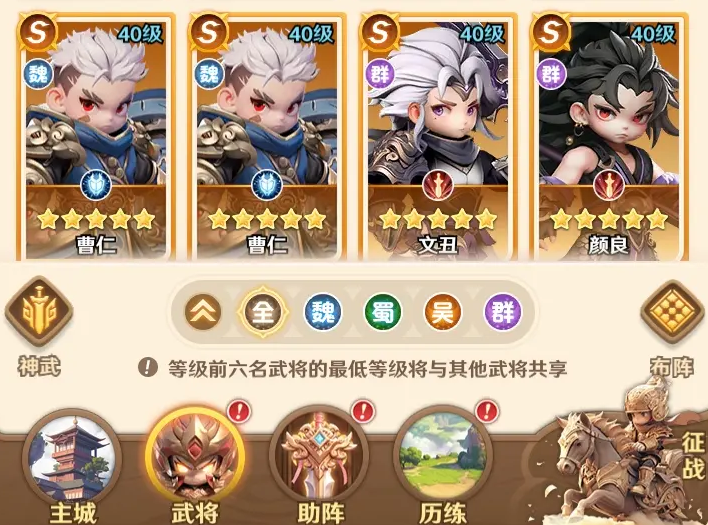 第一套推荐为爆发压制流:司马懿、曹操、张辽、郭嘉、蔡文姬、甄姬。