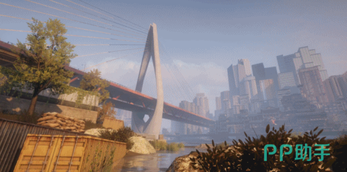 地图全局由一座主跨江大桥及两座辅助吊桥构成纵向交通骨架,三座桥梁横贯东西,形成天然分界与战略支点。其中吊桥通行口均配备独立权限验证机制,需持有对应类型钥匙方可开启通行权限。