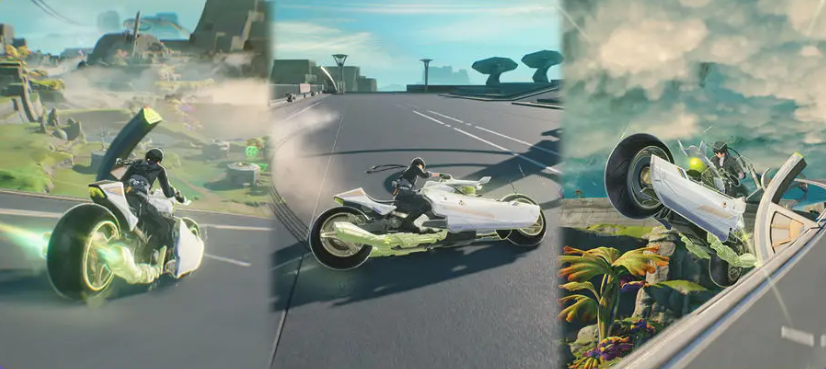 骑行过程中支持多项操作:持续加速、动能爆发突进、可控漂移转向、海豚跳越障。载具运行时自动激活防御力场,可吸收一定量伤害与控制效果;一旦力场被完全击破,角色将强制退出载具状态。此外,科考摩托搭载万向锚钩锁模块,可在一定距离内精准钩取声匣、采集点及其他可互动物件,大幅优化远距离资源收集流程。