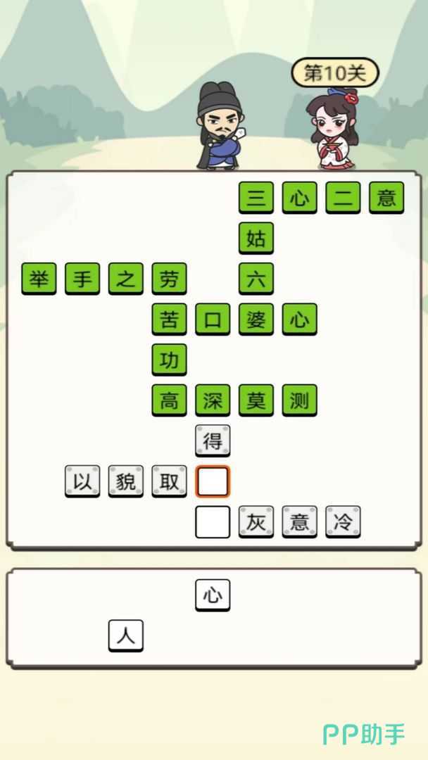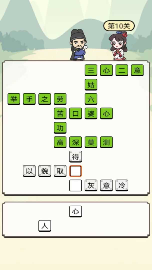 谜题设计强调多维协同:棋盘采用非对称网格布局,单局需同步构建多个关联成语;全部候选字隐藏于侧边栏,考验信息检索与空间联想能力;答案提交后不可撤销,提升决策严谨性。门客系统支持招募不同专长的虚拟助手,如“典故通”“谐音王”,协作破解高难度组合题型。