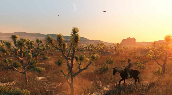 玩家在游戏中将扮演亚瑟·摩根,亲身经历美国西部拓荒末期一个衰败帮派的命运沉浮。游戏构建了超100平方公里的无缝开放世界,涵盖草原、雪山、密林、沙漠与沼泽等多种生态区域。每个地理单元均具备独立气候响应机制与物理交互逻辑——例如降雨时角色衣物会逐渐浸湿,需靠近篝火烘干以恢复生命值;坐骑受惊后需手动安抚方可重新操控。地图支持营地快速传送与电影模式智能寻路,大幅降低长距离移动门槛,让探索更具沉浸感与自由度。