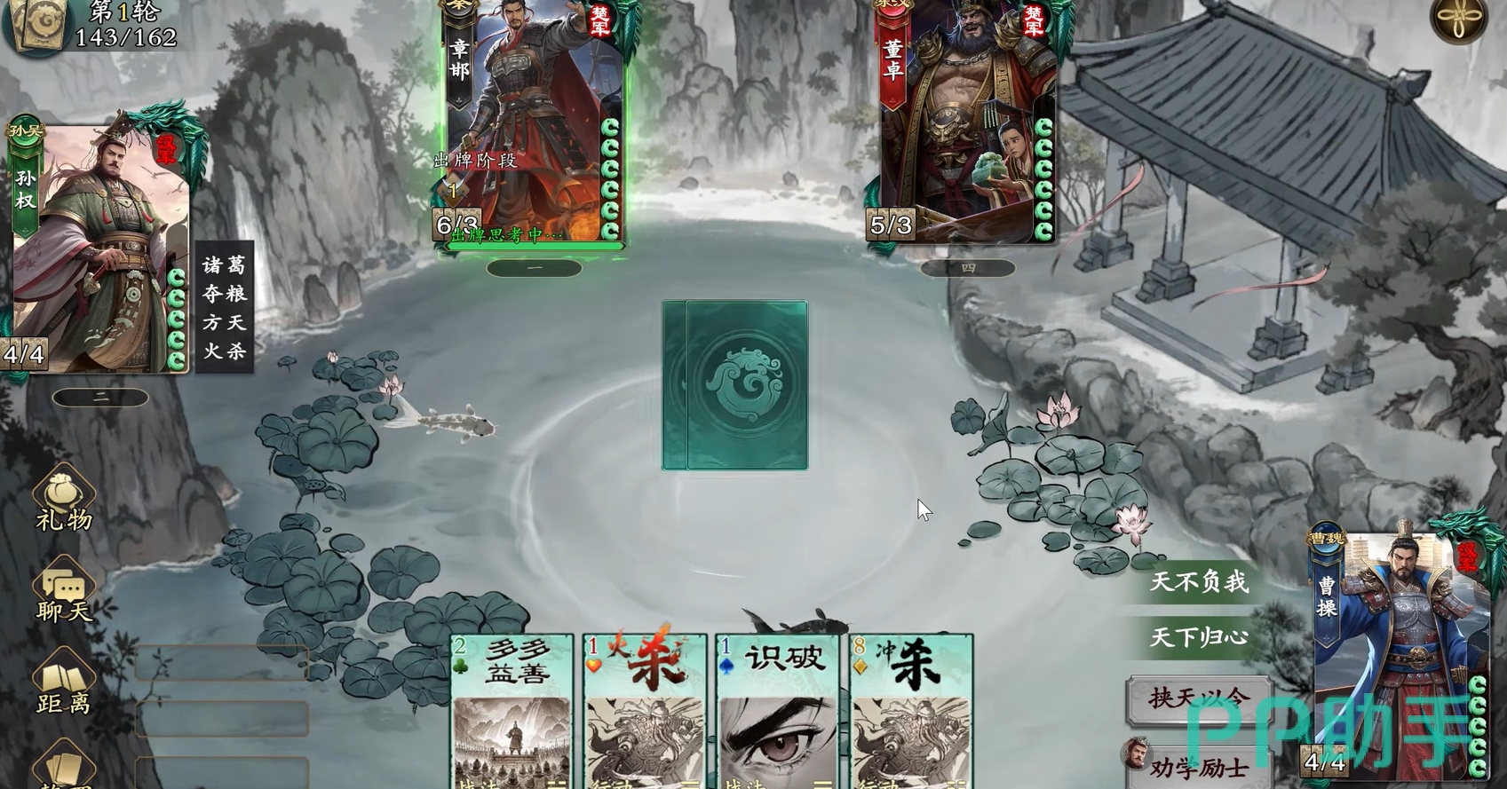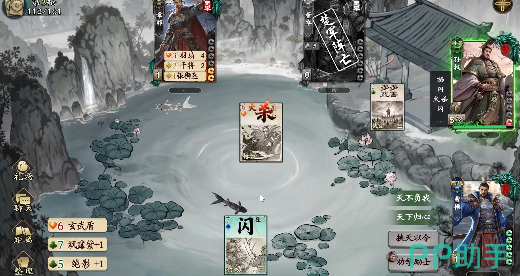第三技能赋予曹操击杀收益转化能力:成功击杀一名其他角色后,可获得其所有未使用的手牌及已装备在装备区的牌,全部移入自身手牌区。该机制极大拓展了中后期节奏掌控权——尤其在集火击破手握多张【杀】、【闪】或关键锦囊的角色后,曹操可即时补充大量可用资源,并在当回合内完成多次攻击目标切换(即“转火”),打乱对手防御部署。此外,在团队协作场景下,队友亦可通过主动牺牲方式,将高价值手牌集中转移至曹操手中,助其快速构建爆发节点。