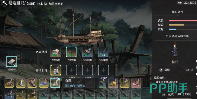 需注意,不同战列舰类型存在差异化建造体系:单桅纵帆船侧重机动性,所需材料仅为龙骨、桅杆与帆布,适合新手过渡阶段;双桅横帆船兼顾航速与载重,须额外补充通用型板材;而大型卡拉克帆船专精远洋贸易,依赖超长“大型龙骨”与多段“桅杆”,采集路径更长、区域限制更严,整体完成门槛显著提升。