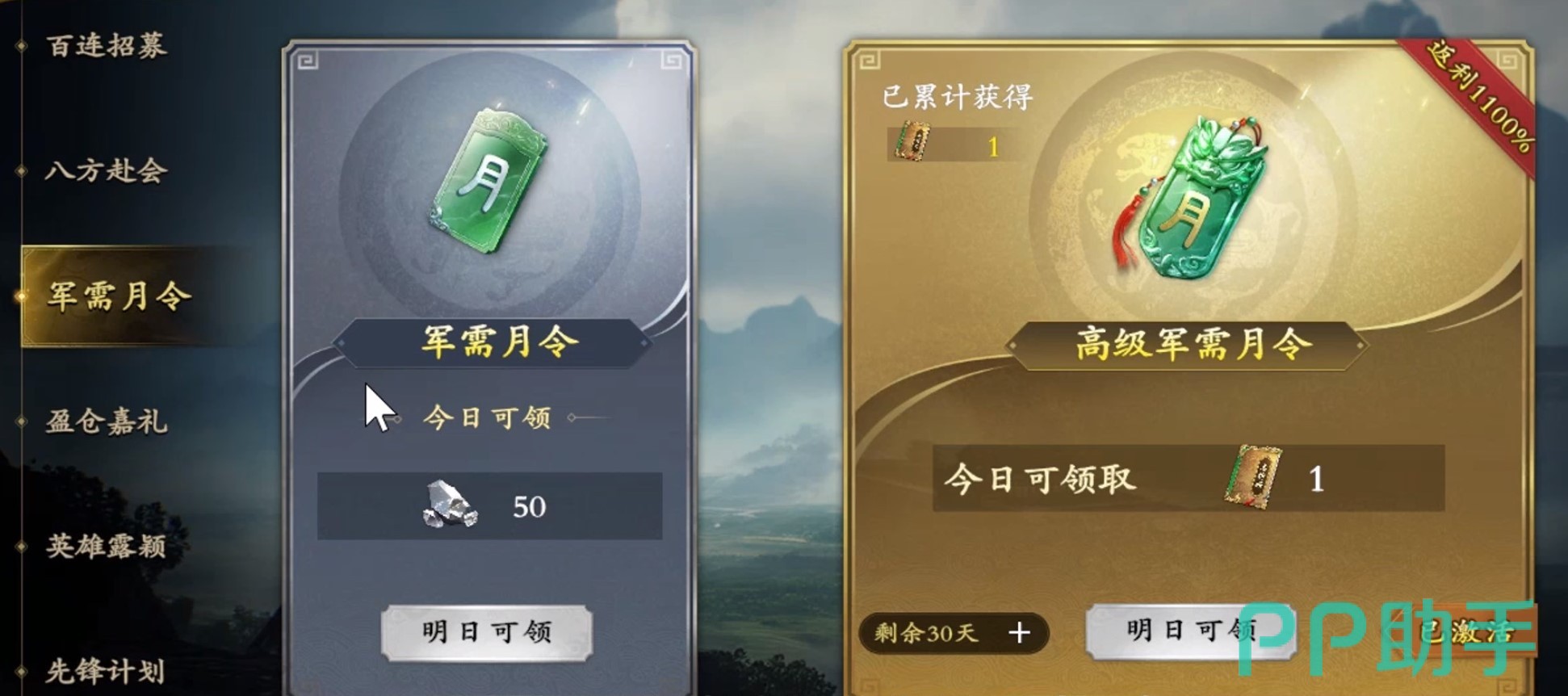 核心付费组合建议优先配置月卡(30元)与入门级战令(38元档)。二者协同可提供约40–50次招募机会,足以覆盖一次完整保底周期。此外,新手成长体系中的定向礼包具备高性价比:含新手招募礼、日/周/月名将礼在内的全套新手礼包,总费用约200元,可额外补充数十次抽取次数,显著缩短养成周期。